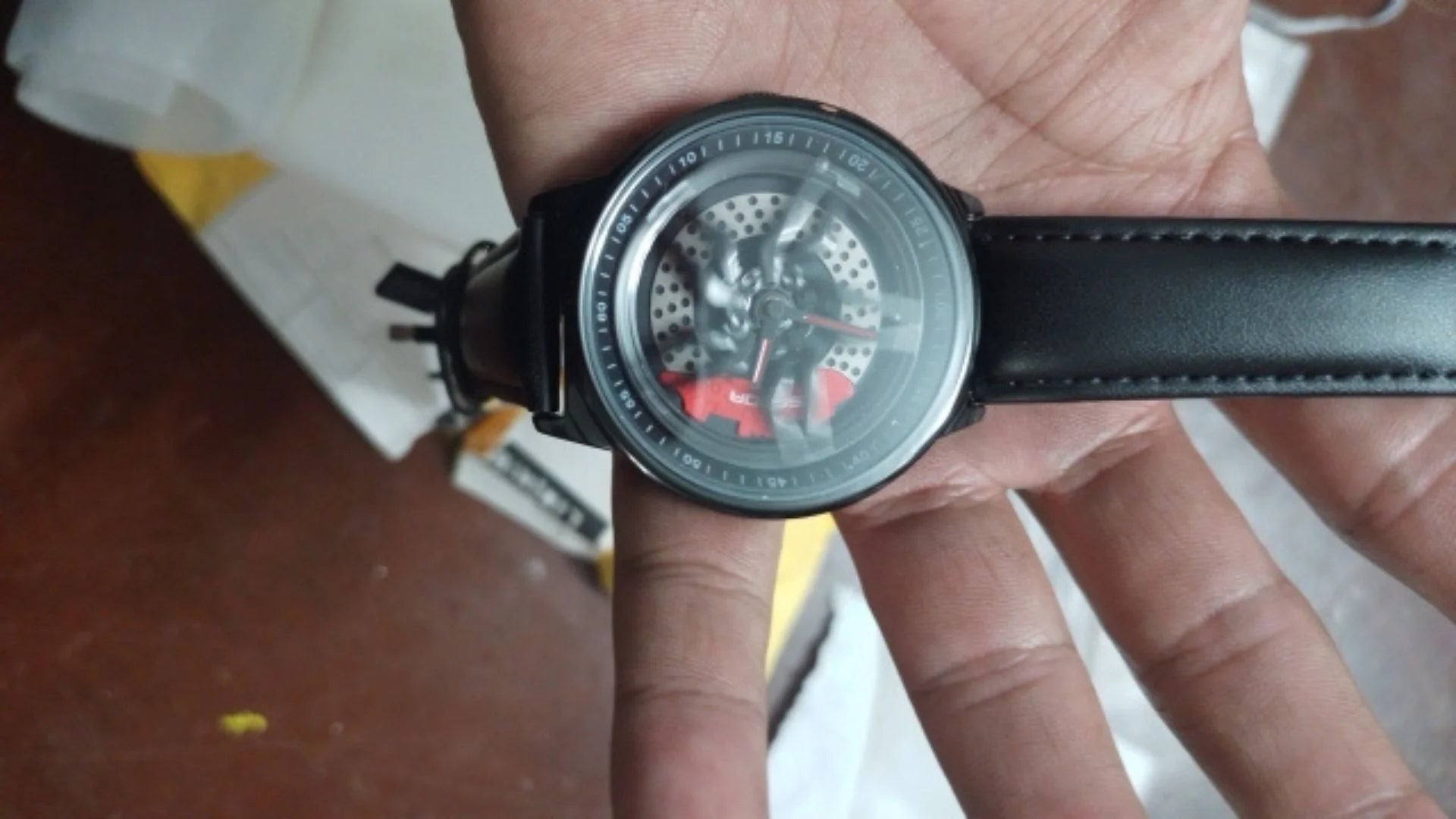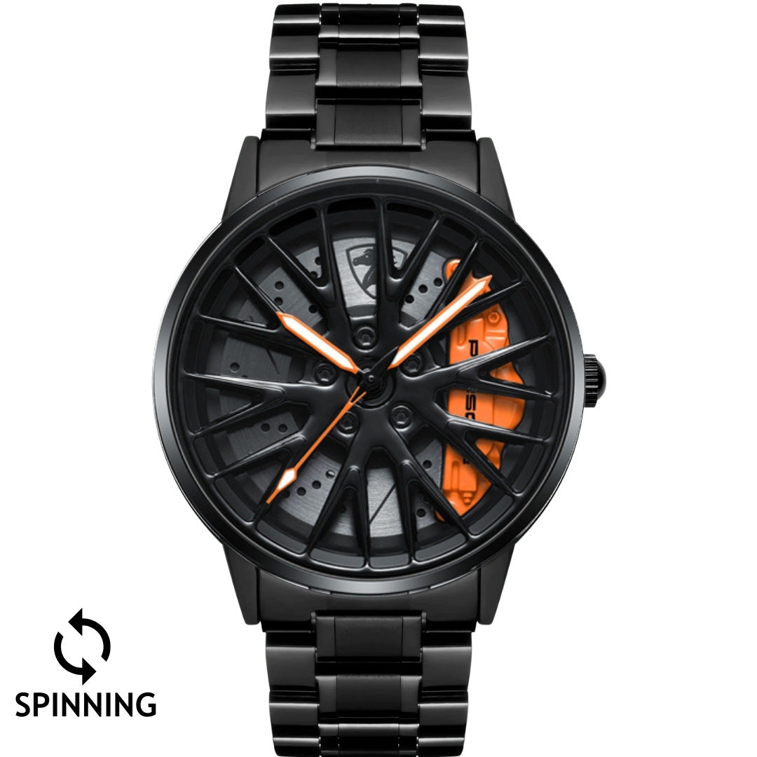 We have two different type of watches, spinning and non-spinning watches. Not every model is available in both. The non-spinning watch is just like your traditional watch. The spinning variant is unique. When you twist your wrist, the wheel inside the watch face spins freely. This mimics the effect of a moving car!