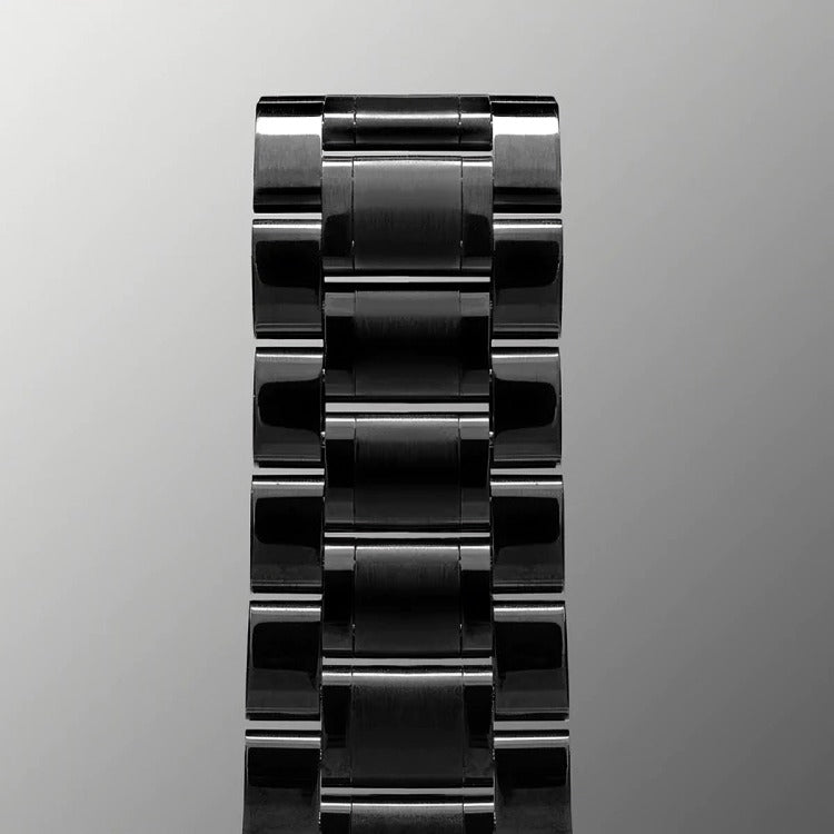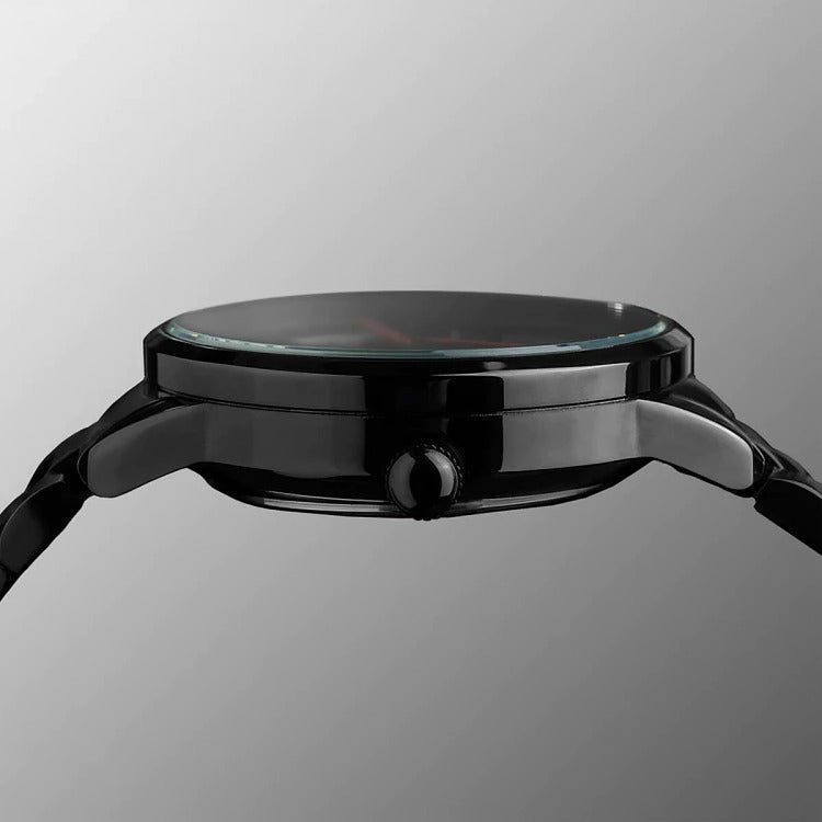 Our watches feature a durable 43mm case crafted from black titanium carbide-coated stainless steel, boasting a sleek profile with a thickness of 12mm and 30M/3ATM water resistance for added durability and style.